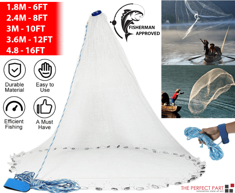 Home > Fishing Cast Net Bait Easy Throw Hand Cast Strong Nylon Mesh USA