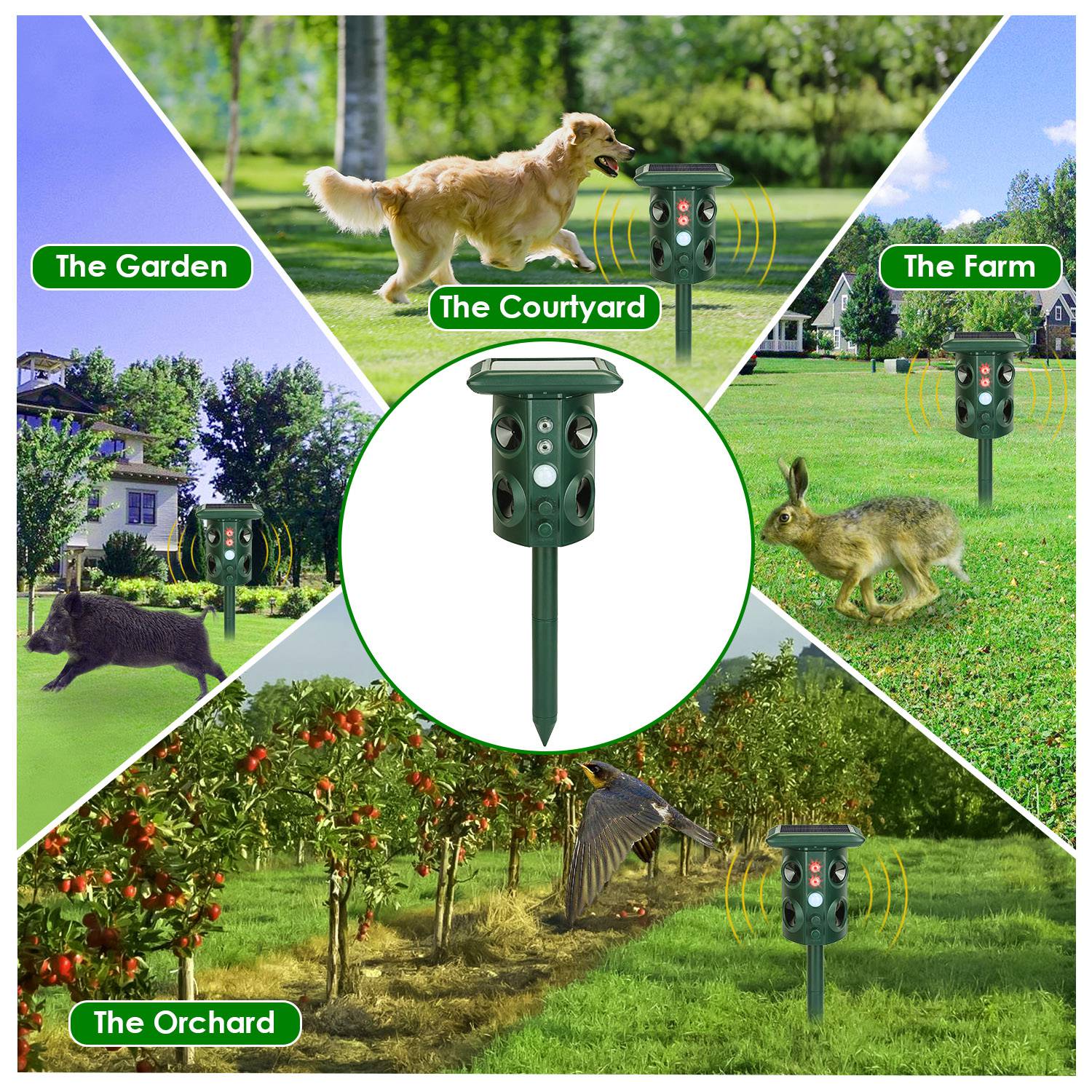 Home > Temu & TK Self-pickup Order, 5-mode Animal Repellent - Solar-powered, USB Charging, Infrared Sensor, Coverage Area 3229 Sq Ft, IP54 Waterproof Ra